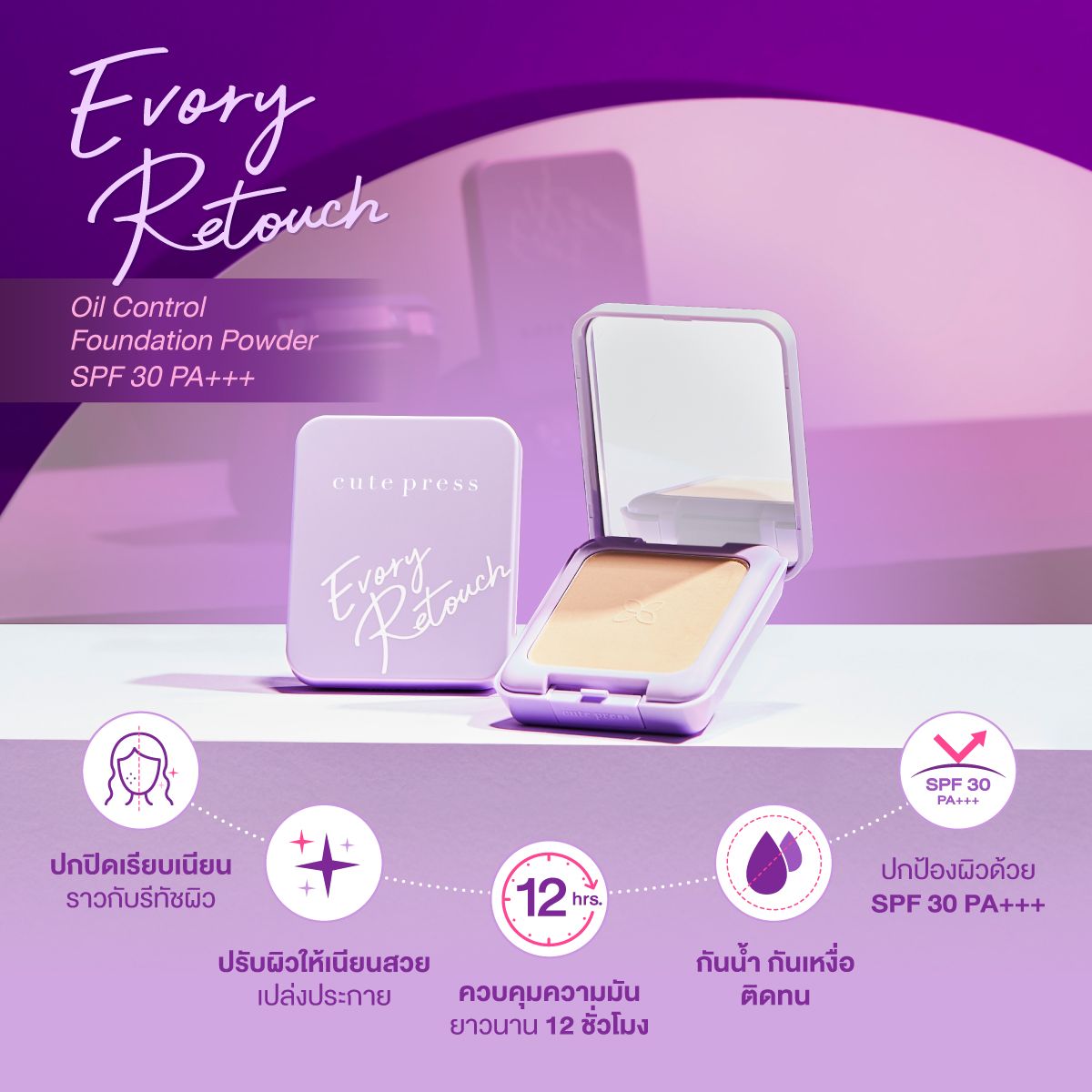 Cute Press Evory Retouch Oil Control Foundation Powder SPF 30 PA+++ อิเวอร์รี่ รีทัช ออยล์ คอนโทรล ฟาวเดชั่น พาวเดอร์ เอสพีเอฟ 30 ตลับคอมแพ็ค