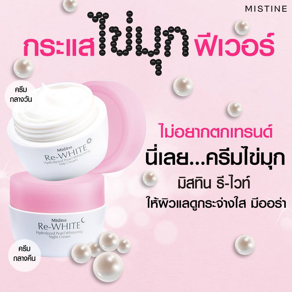 Mistine Re White Hydrolyzed Pearl Whitening 30g. มิสทิน รึ ไวท์ ไฮโดรไลซ์ เพิร์ล ไวท์เทนนิ่ง ครีมบำรุงผิวหน้า ครีมทาหน้า ครีมกลางวัน ครีมกลางคืน มี 2 สูตรให้เลือก (1 กระปุก)